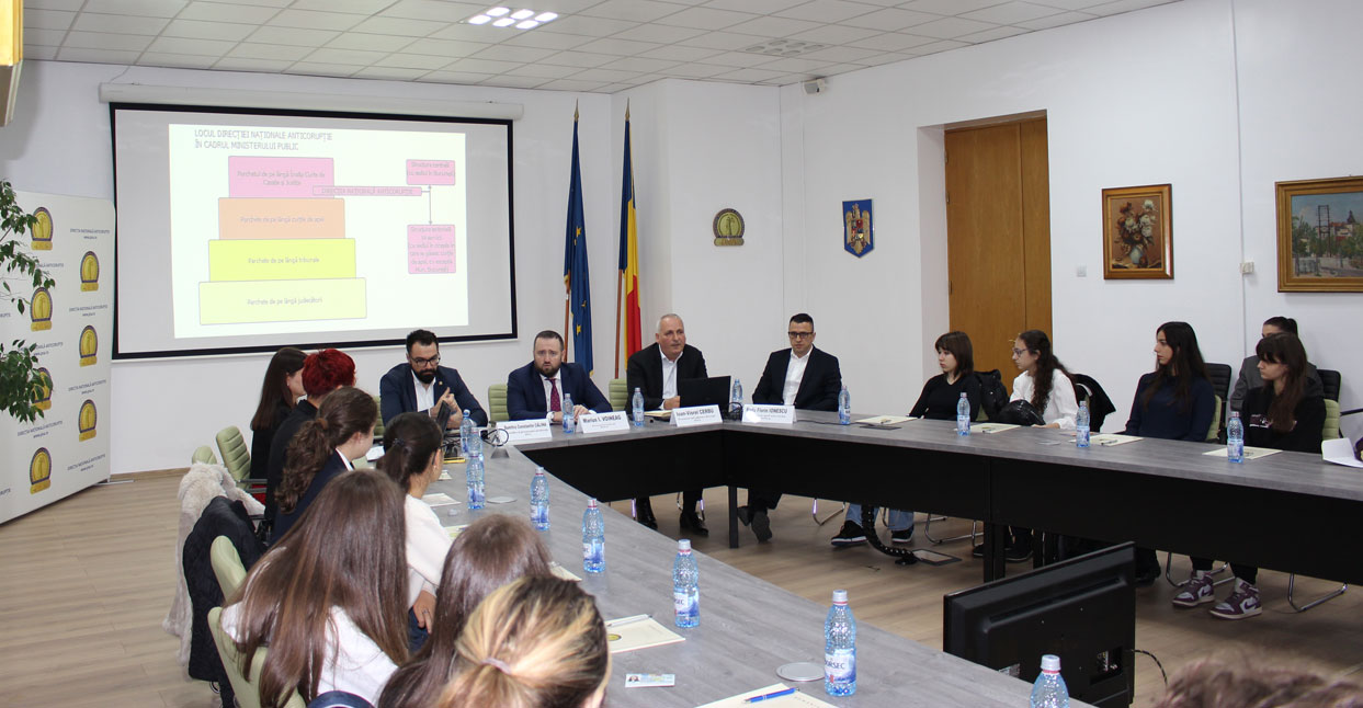 Elevii au avut și prilejul de a cunoaște competențele DNA în combaterea corupției, precum și modalitatea generală de investigare a faptelor penale, în considerarea rolul instituției în instrumentarea cauzelor de corupție la nivel înalt și mediu.